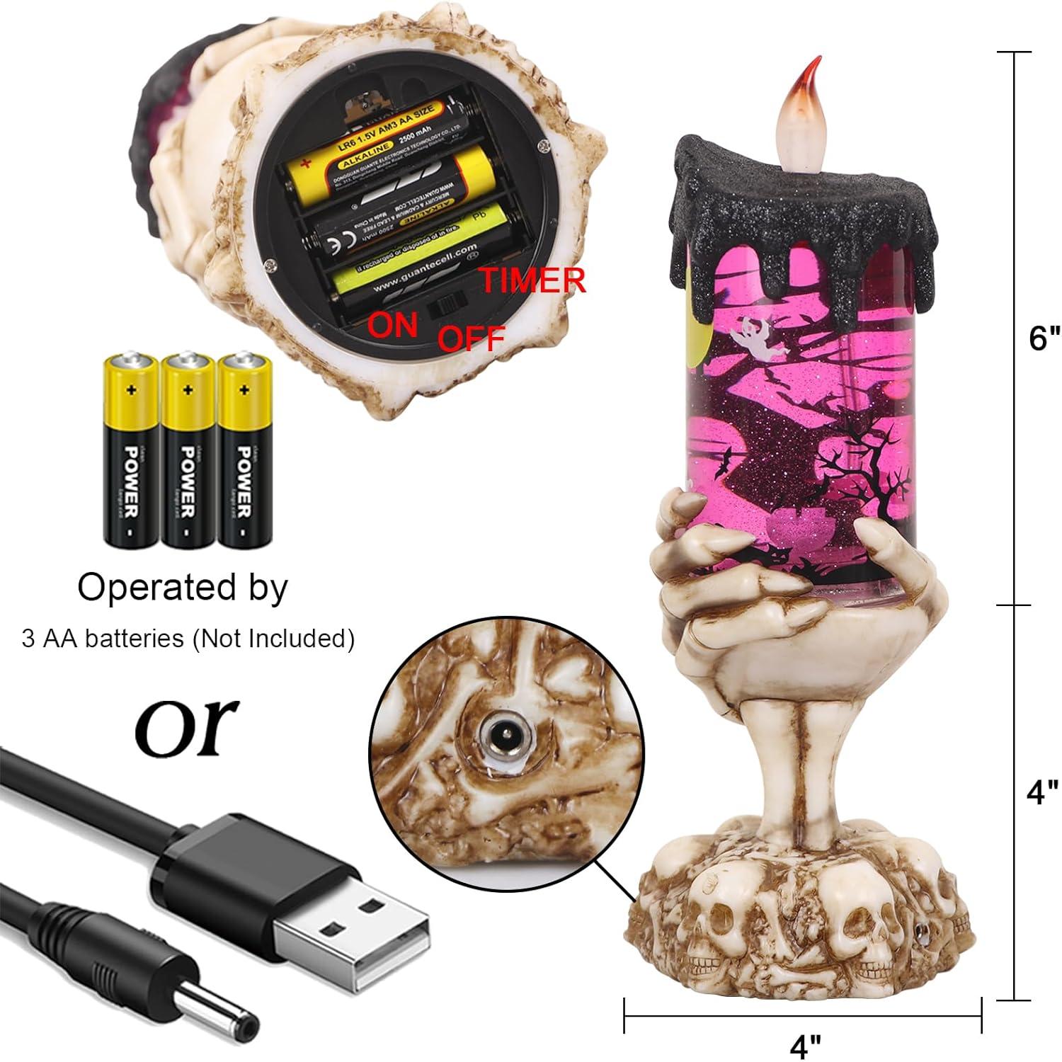 CREATIVE DESIGN: Unlike traditional flameless candles, this lighted snow globe candle powered by 3 AA batteries and built-in motor swirl the water like the GHOST spinning around the candle. A great addition to your indoor Halloween decoration