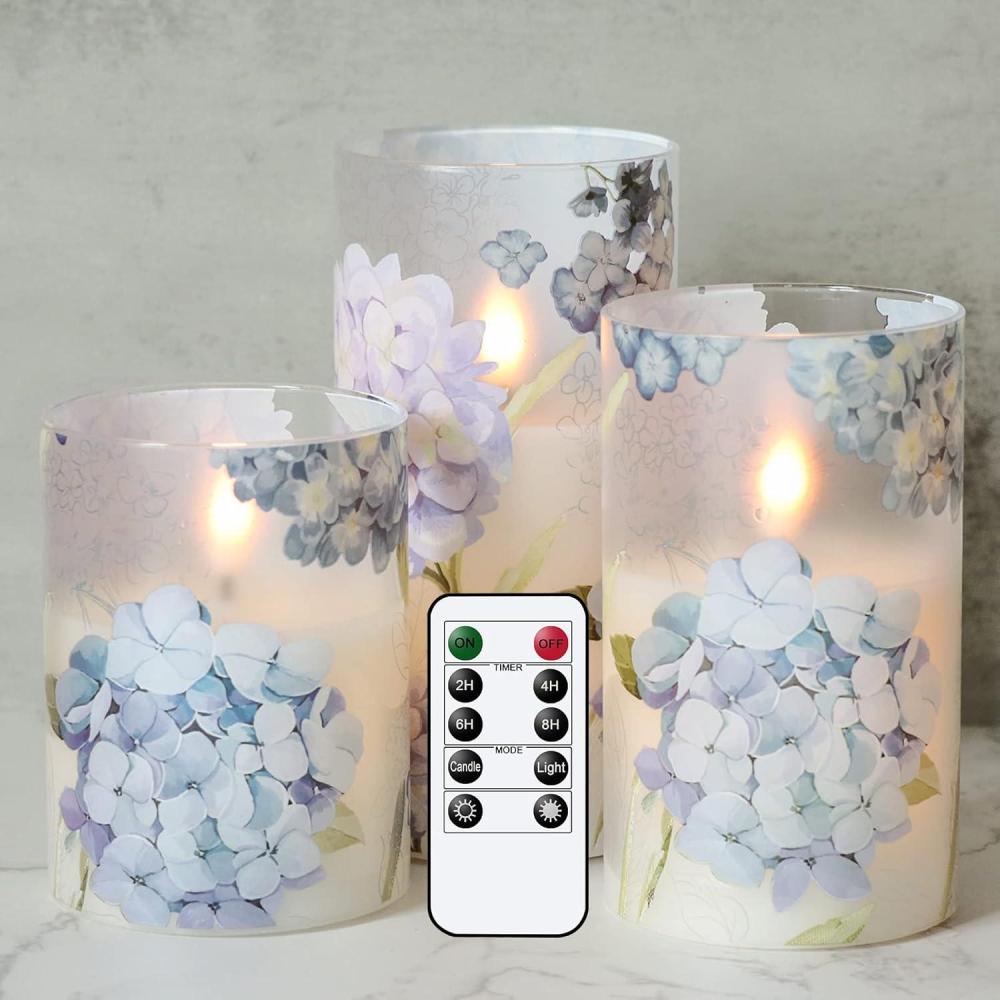 imageEldnacele Snowman Glass Flameless Flickering Candles with Remote and Timer Battery Operated Real Wax LED Pillar Candles Snowman House Decal Christmas Home Indoor Holiday Decor 3Pcs D3H45quot6quot3 Hydrangea Bule